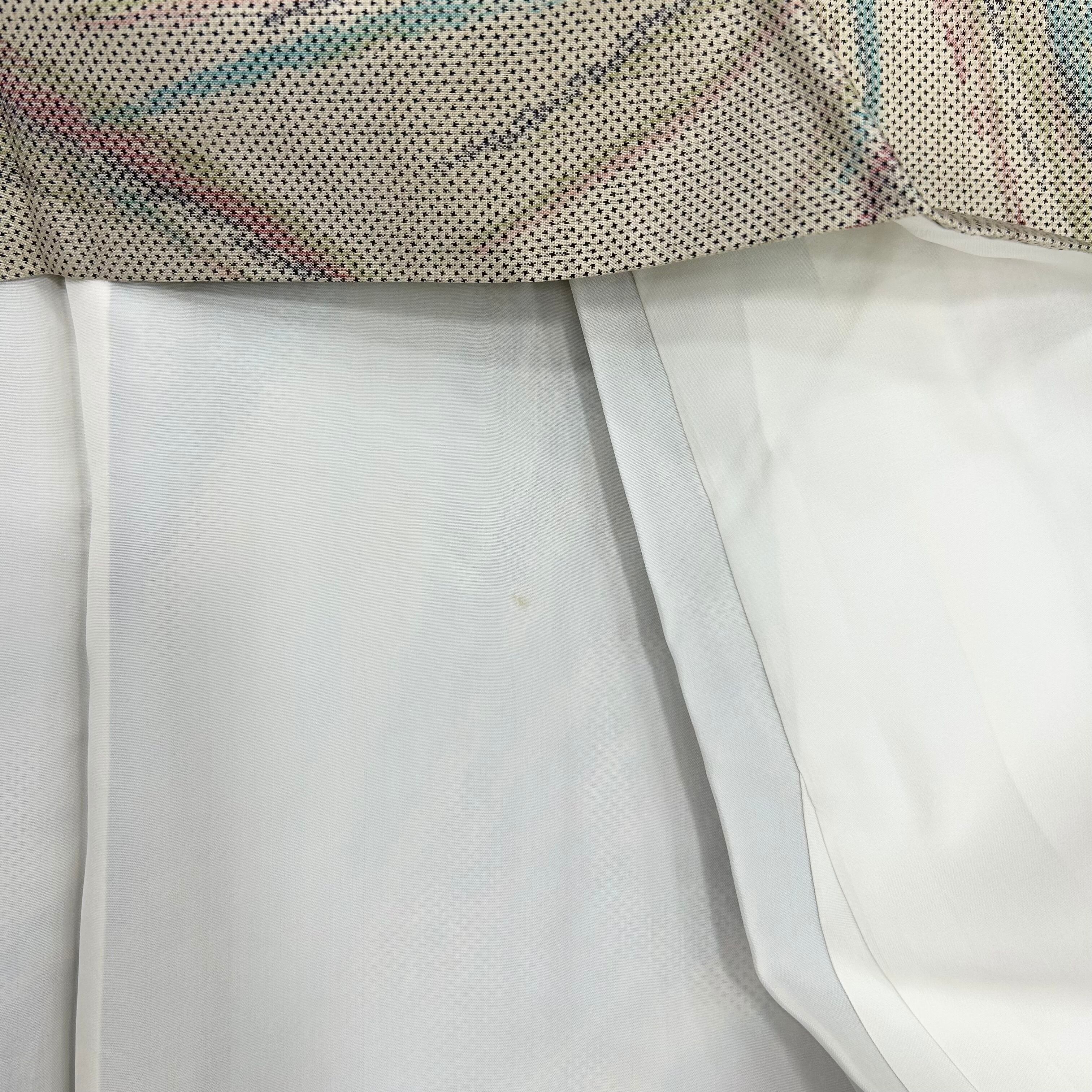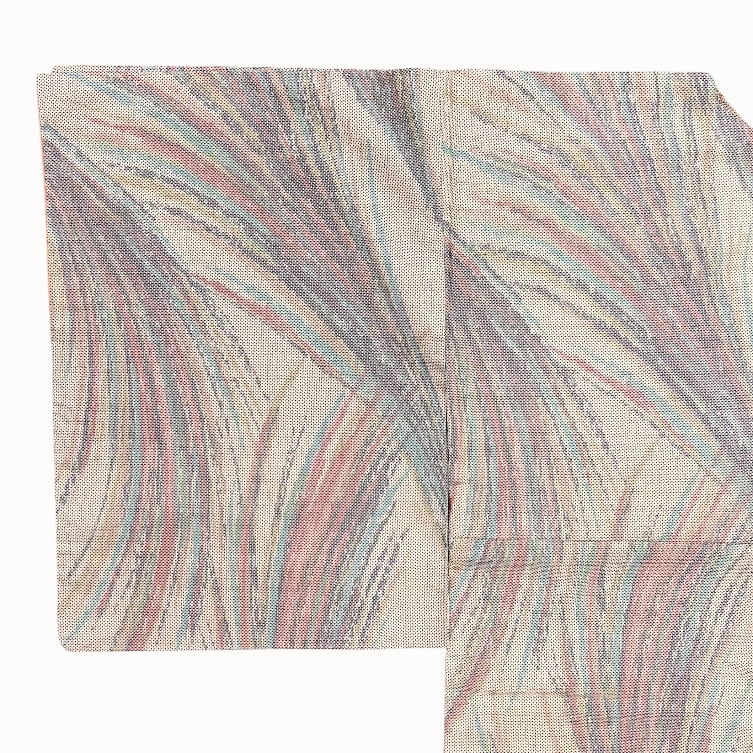 紬 袷 リユース ベージュ 流線