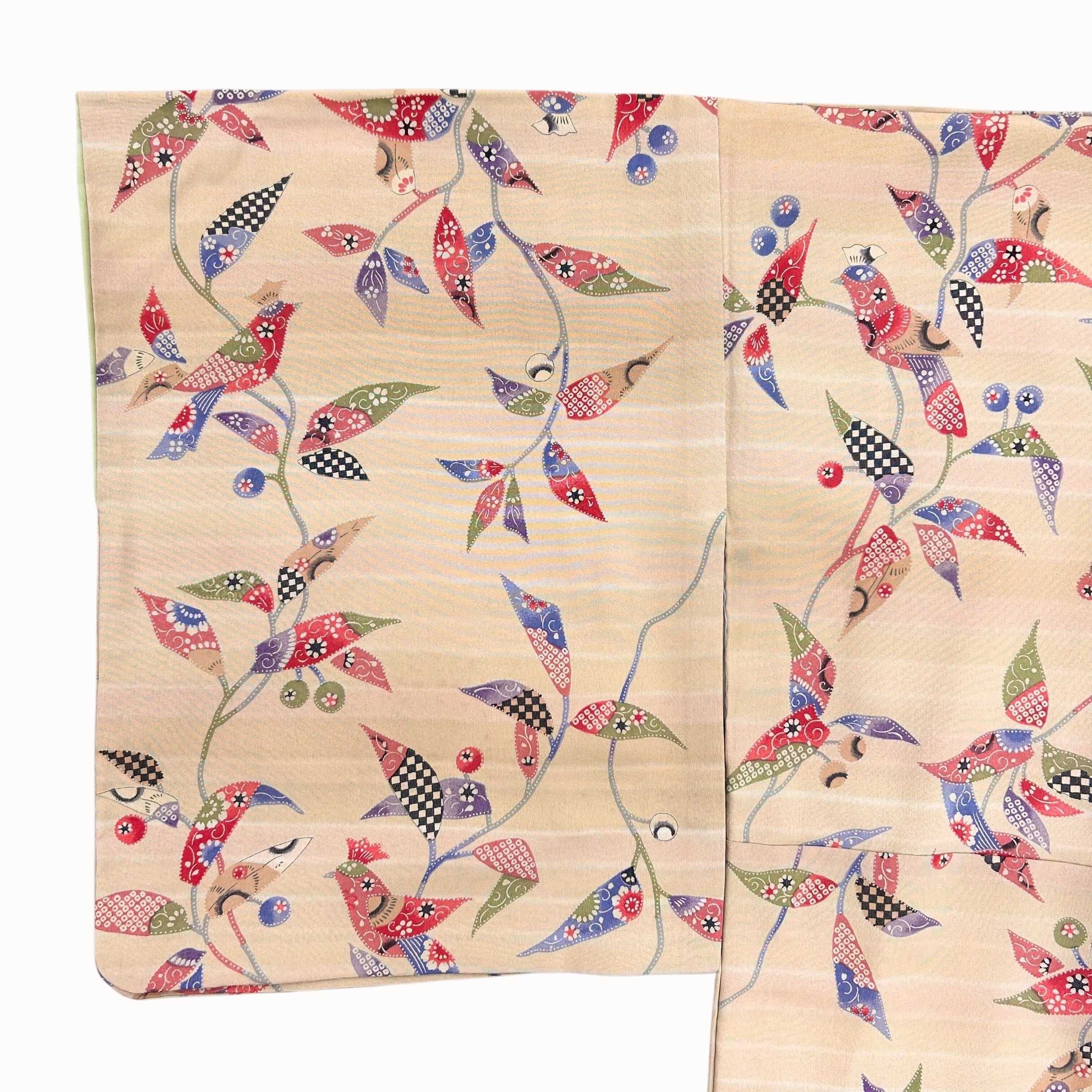 小紋 袷 リユース ベージュ 鳥