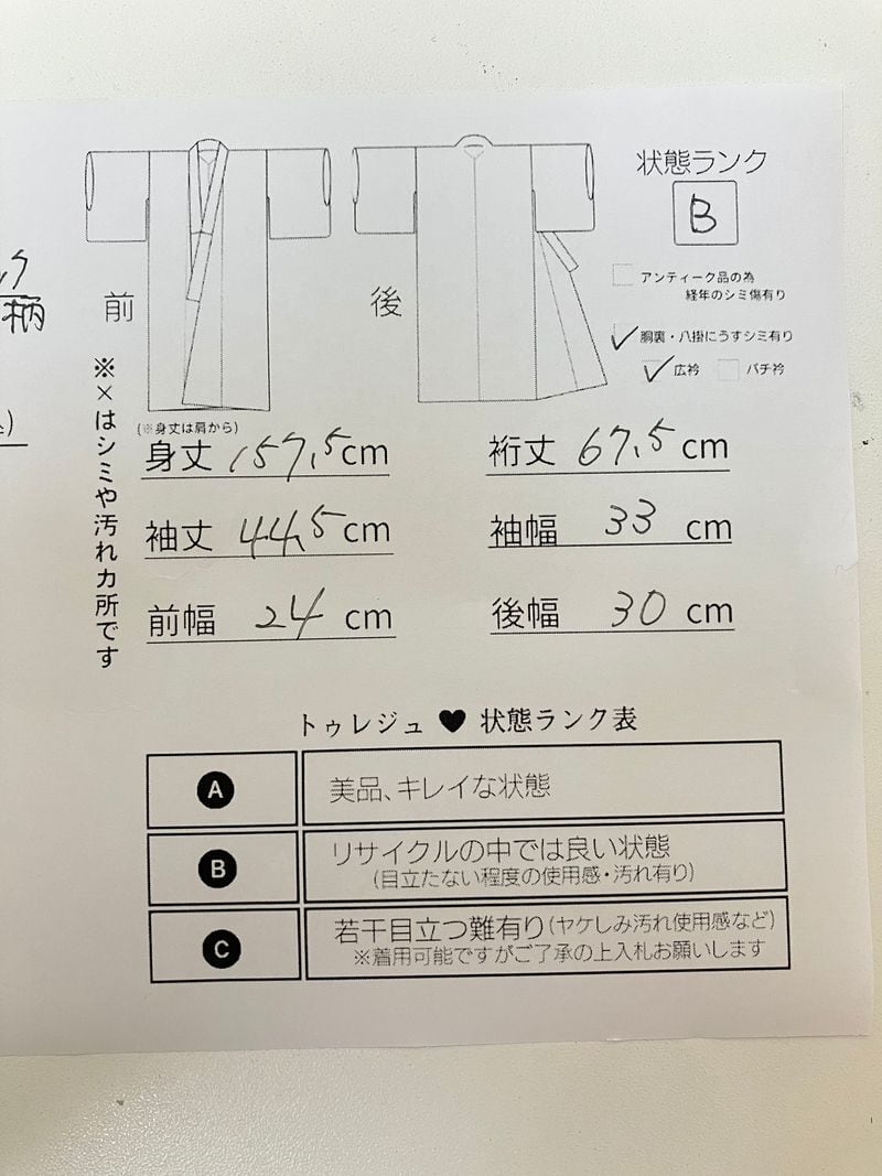 アンティーク着物.帯(銘仙など)は、長い年月を経たヴィンテージアイテムのため、生地にシミや色の変化が見られることが多くあります。ほとんどの商品に何らかの経年変化がございますが、すべての状態を写真でご紹介することは難しいため、アンティーク品の特性をご理解いただいたうえでご購入をお願いいたします。