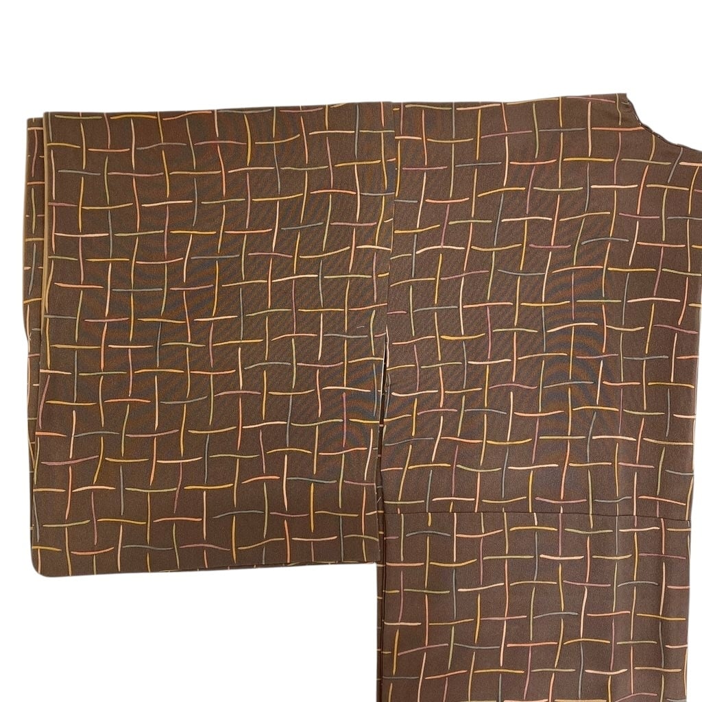 小紋 袷 リユース ブラウン チェック