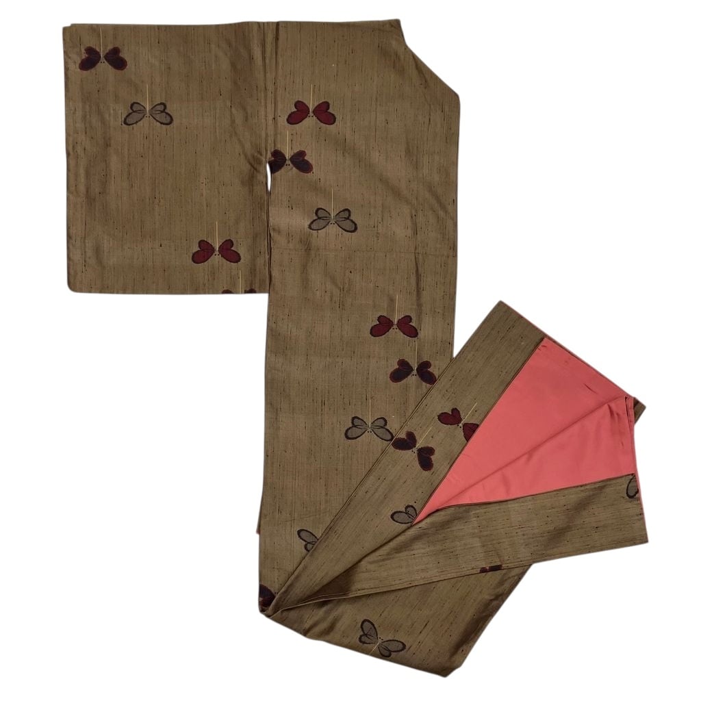 紬 袷 リユース 茶系 蝶々柄