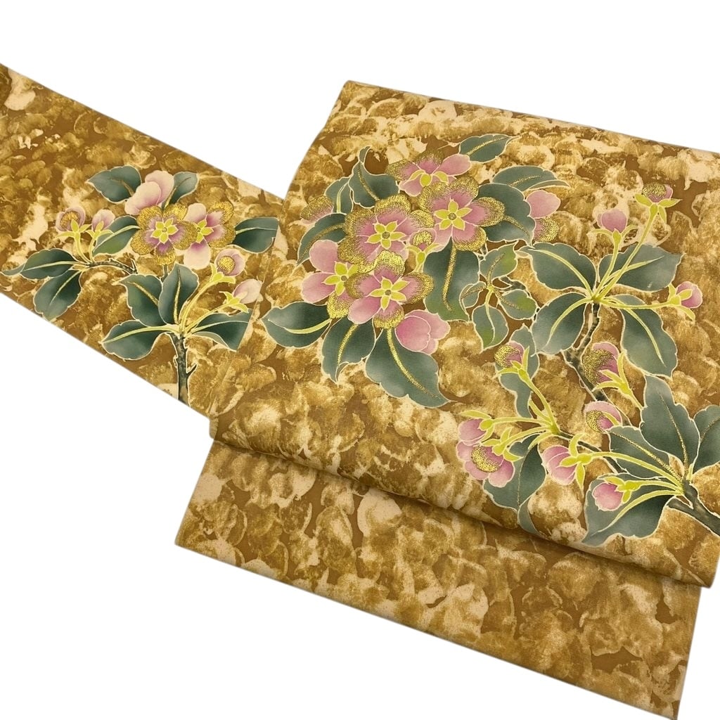 アンティーク 名古屋帯 リユース 黄色系 花柄