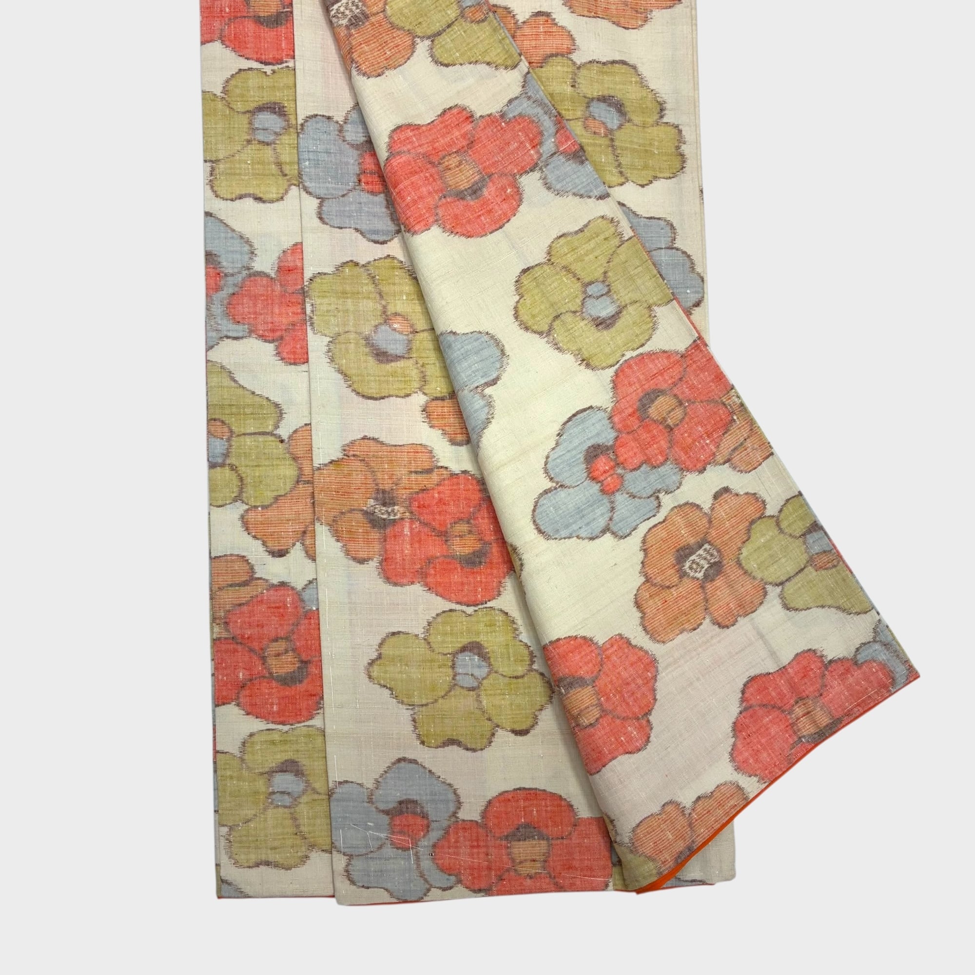 紬 袷 リユース クリーム色系 花柄