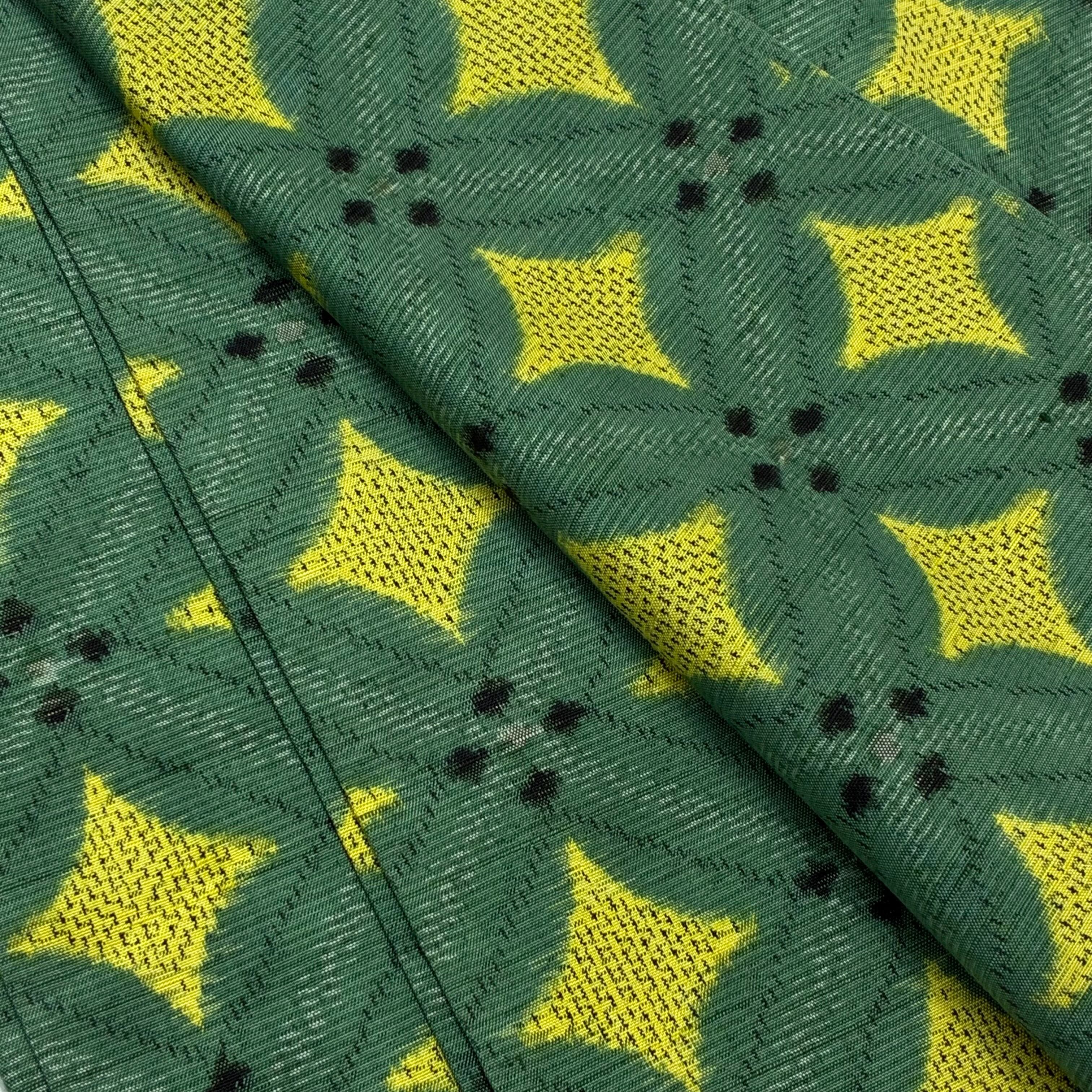 単衣 紬 リユース 緑色系 菱 幾何学 スモールサイズ