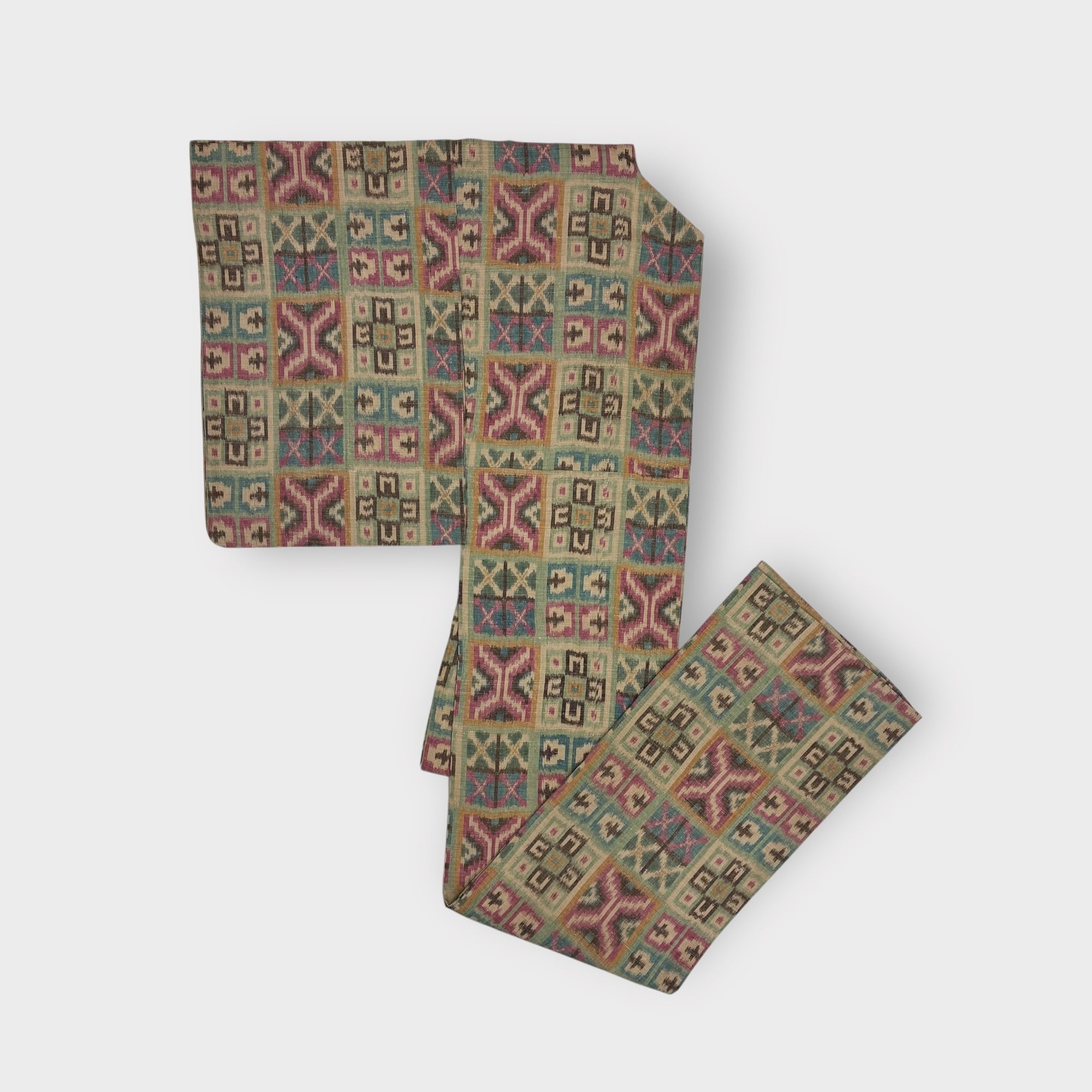 単衣 紬 リユース 幾何学 ベージュ 茶色系