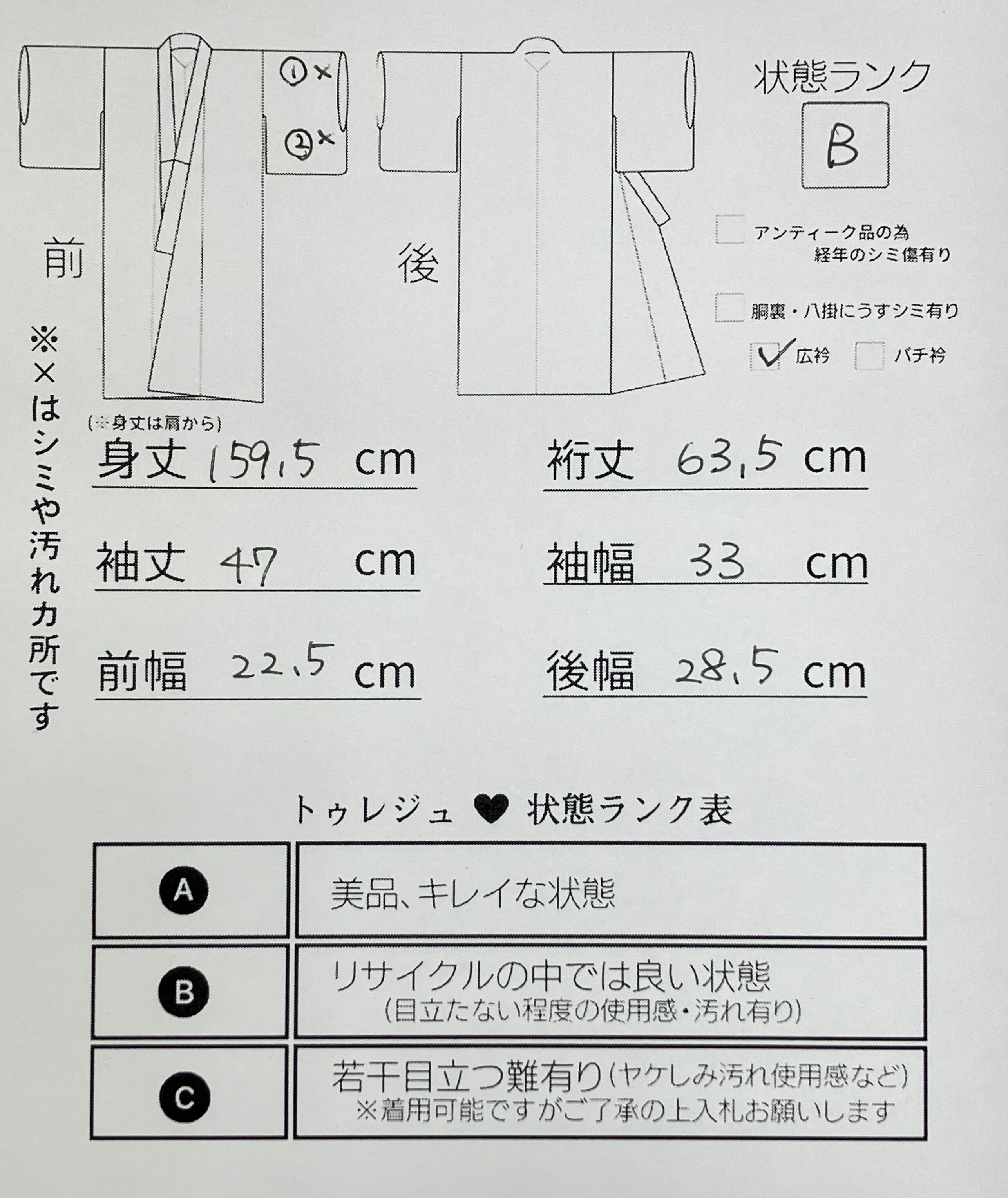 身丈 159.5㎝