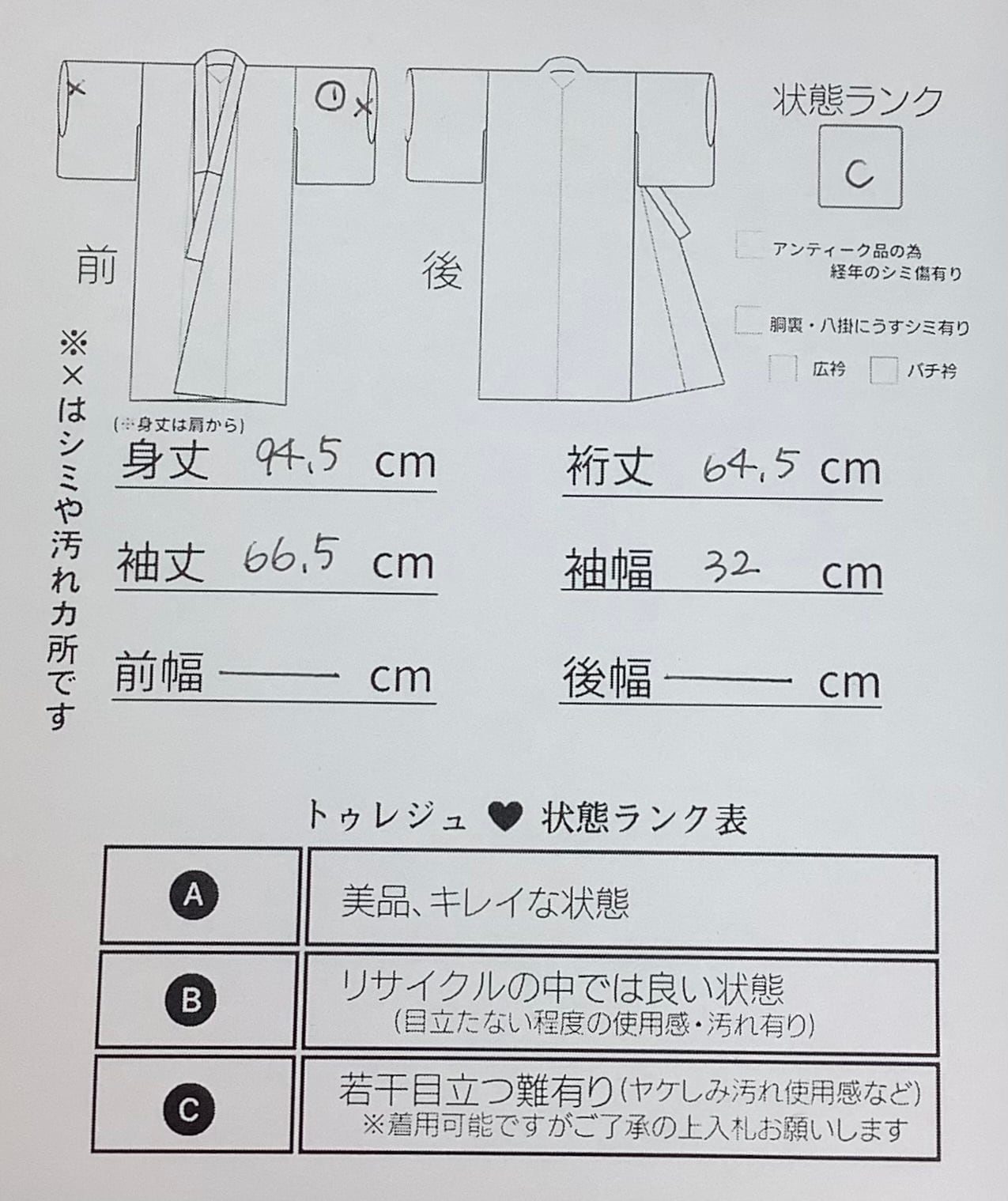 身丈 約94.5㎝(背から)