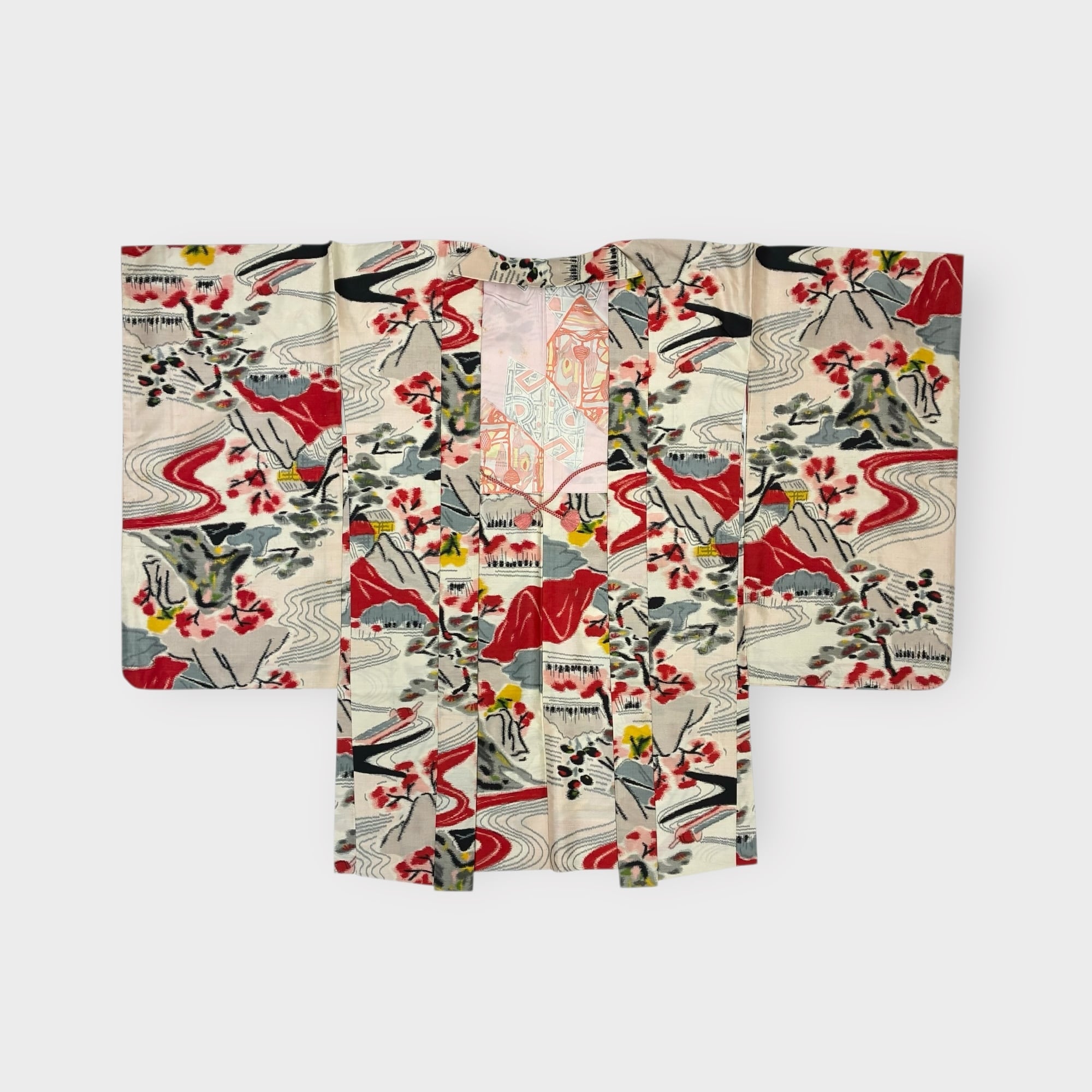 銘仙 アンティーク 羽織 リユース レトロ 風景 羽織紐付