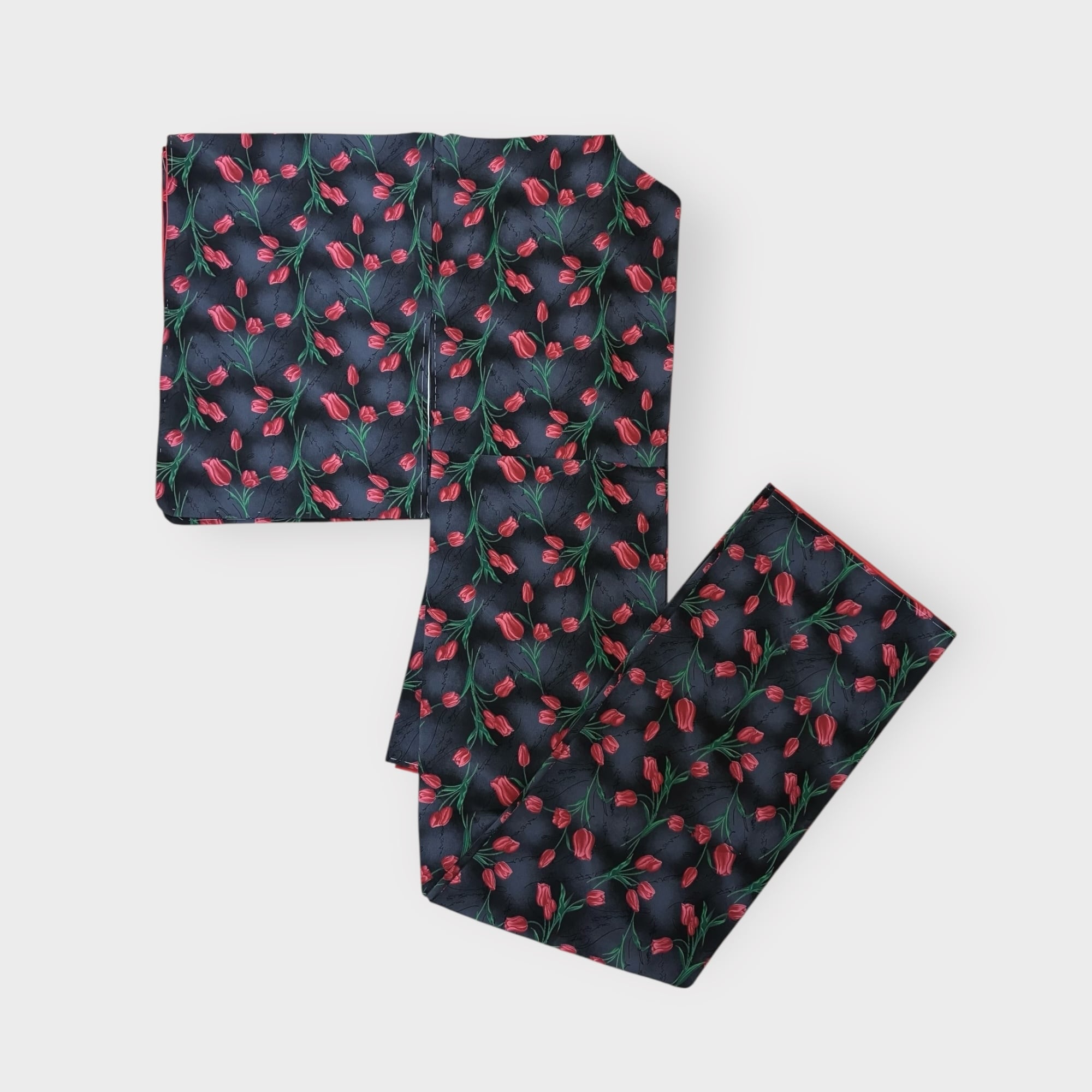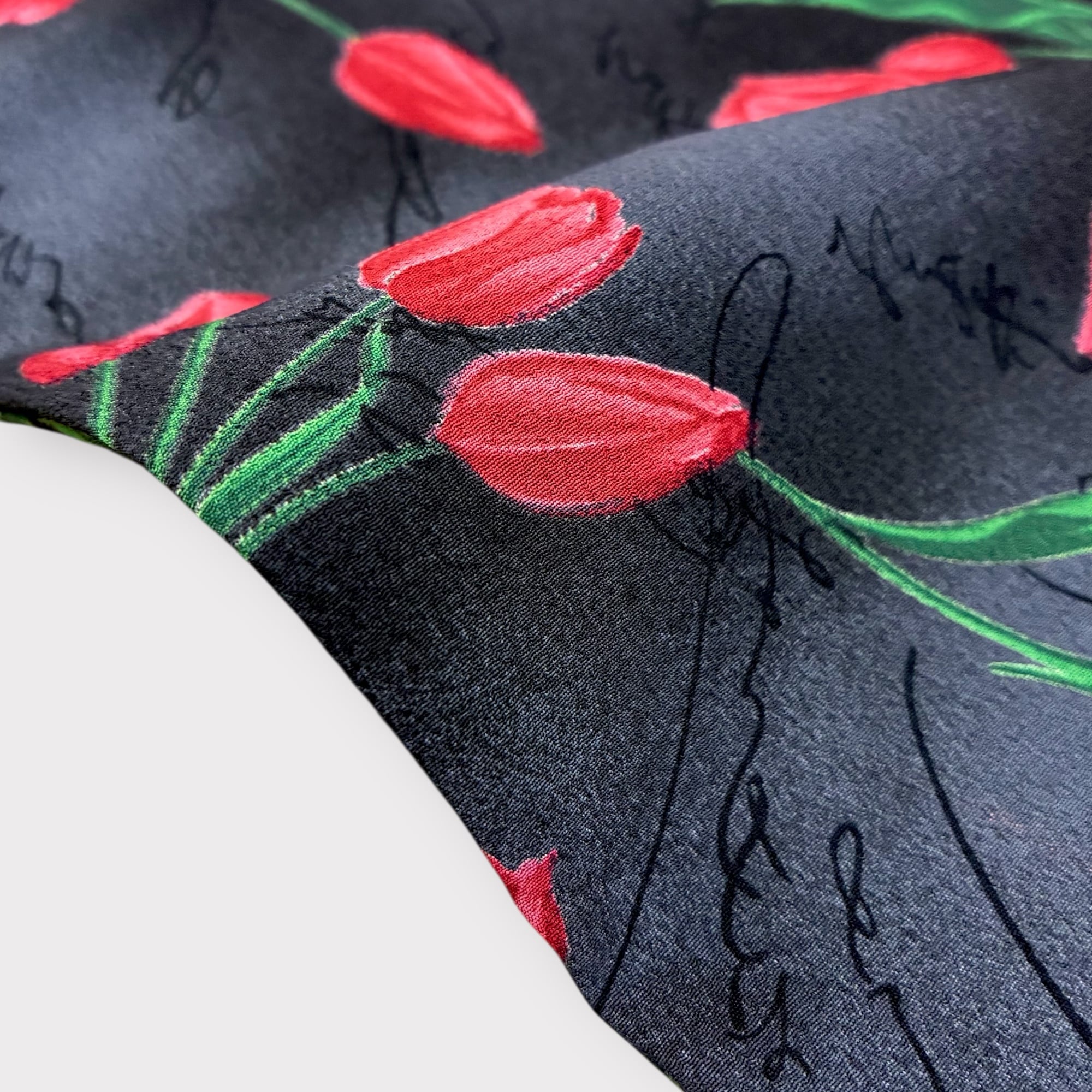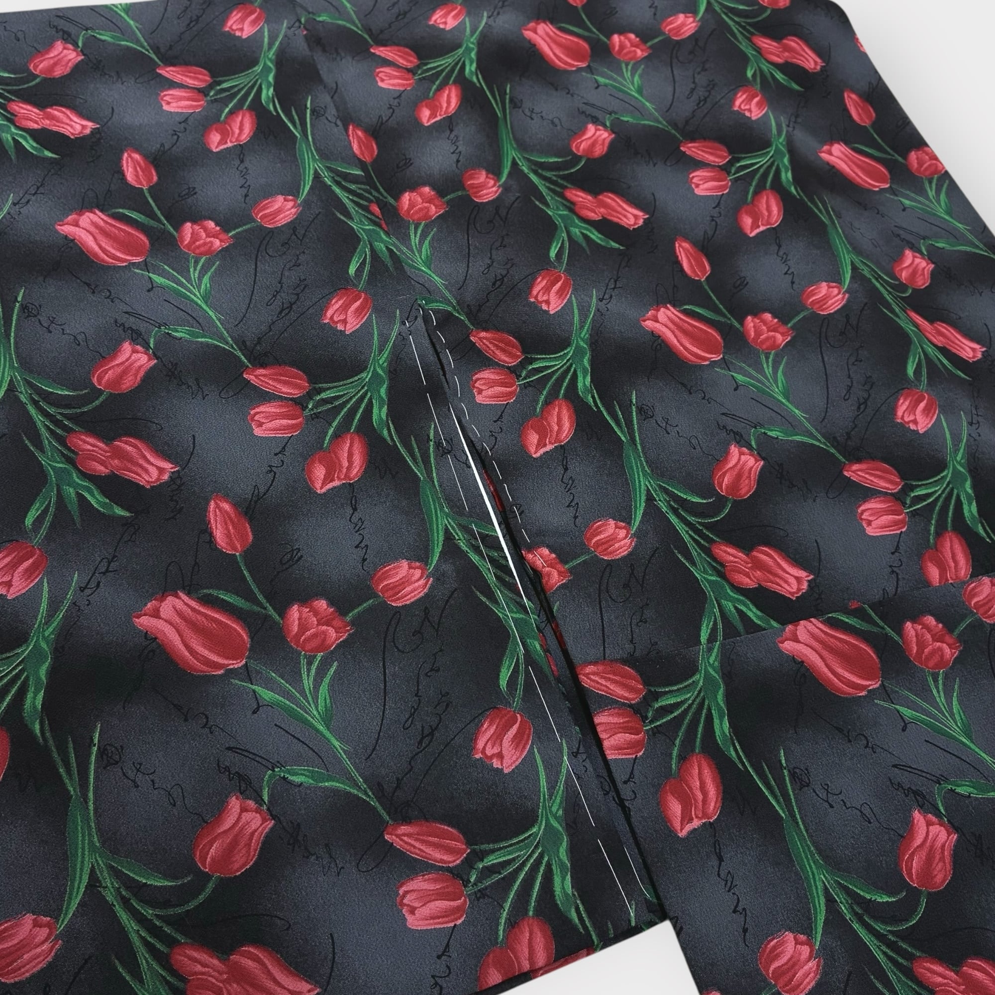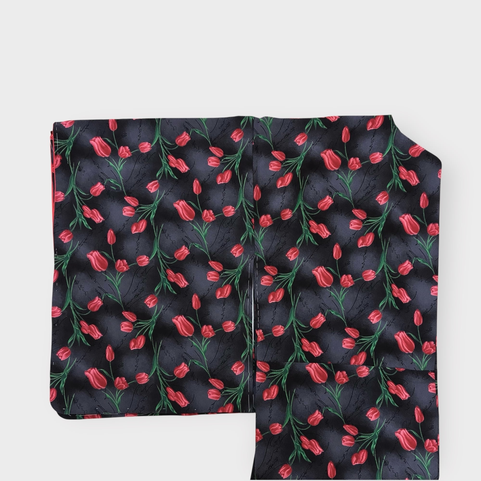 小紋 袷 ポリエステル リユース 黒地 チューリップ柄 Kimono