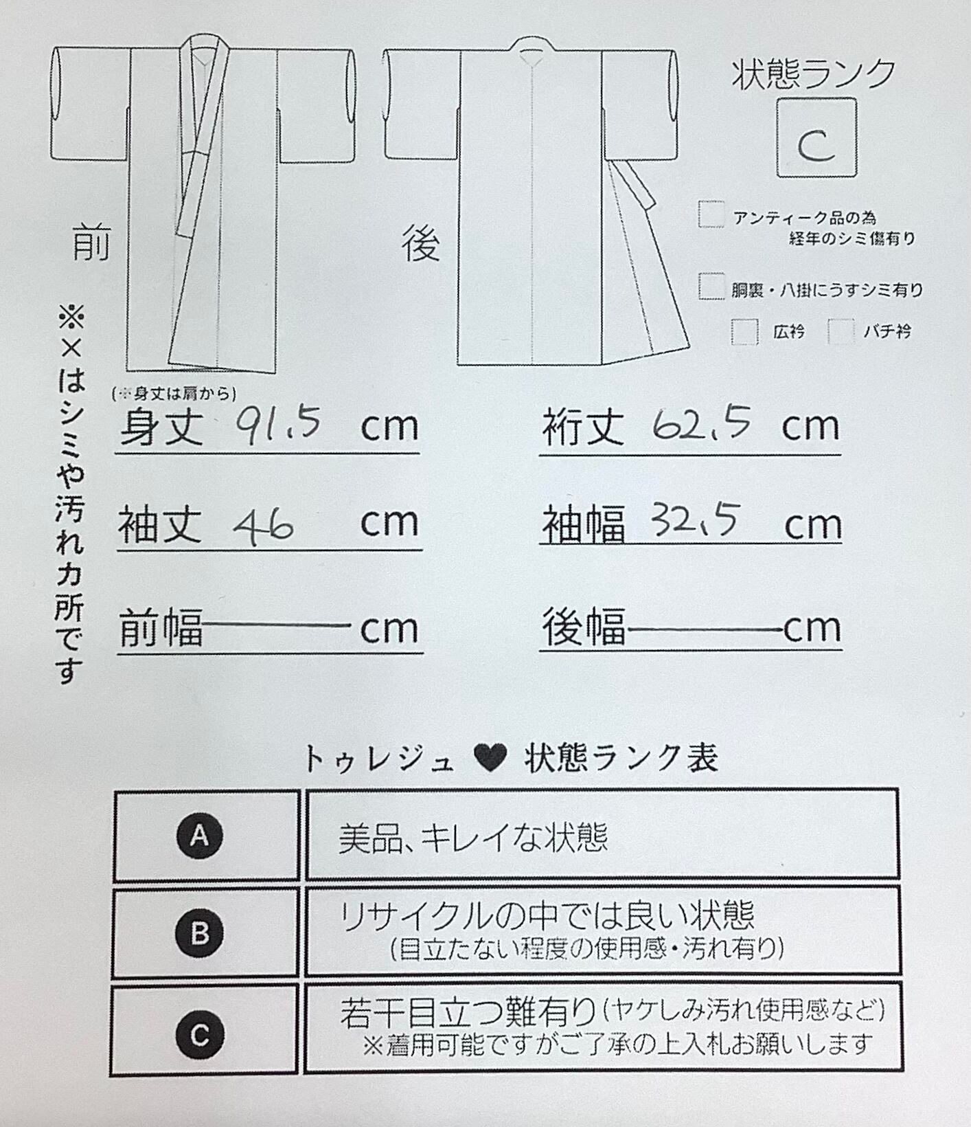身丈 約91.5㎝(背から)